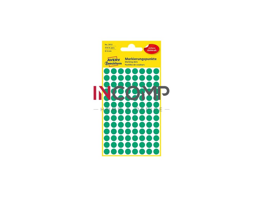 Etikety, okrúhle, priemer: 8 mm, AVERY ZWECKFORM, zelené, 416 etikiet/bal