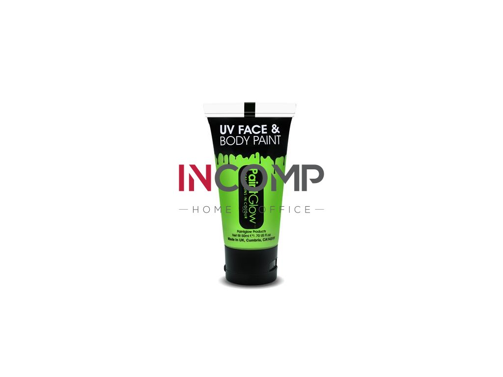PaintGlow™ UV aktívne, na UV svetlo reagujúce farby na telo a tvár, ktoré je možné aplikovať kdekoľvek na povrch tela.