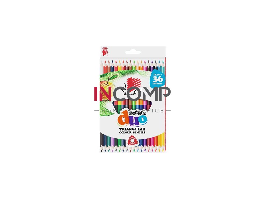 Farebná ceruzka, obojstranná, trojhranný tvar, ICO "Ježko", 36 rôznych farieb