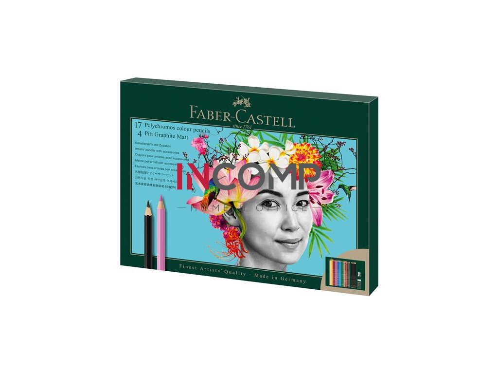 Obsah sady: -17x "Polychromos" farebná ceruzka -4x "Pitt Graphite Matt"grafitová ceruzka (HB;4B;8B;14B) -1x guma z vinylu -1x kovové strúhadlo