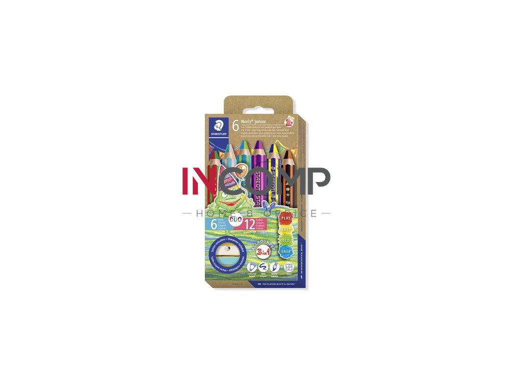 Farebné ceruzky, sada, dvojfarebné, so strúhadlom, STAEDTLER "Noris® junior 140", 6 rôznych farieb