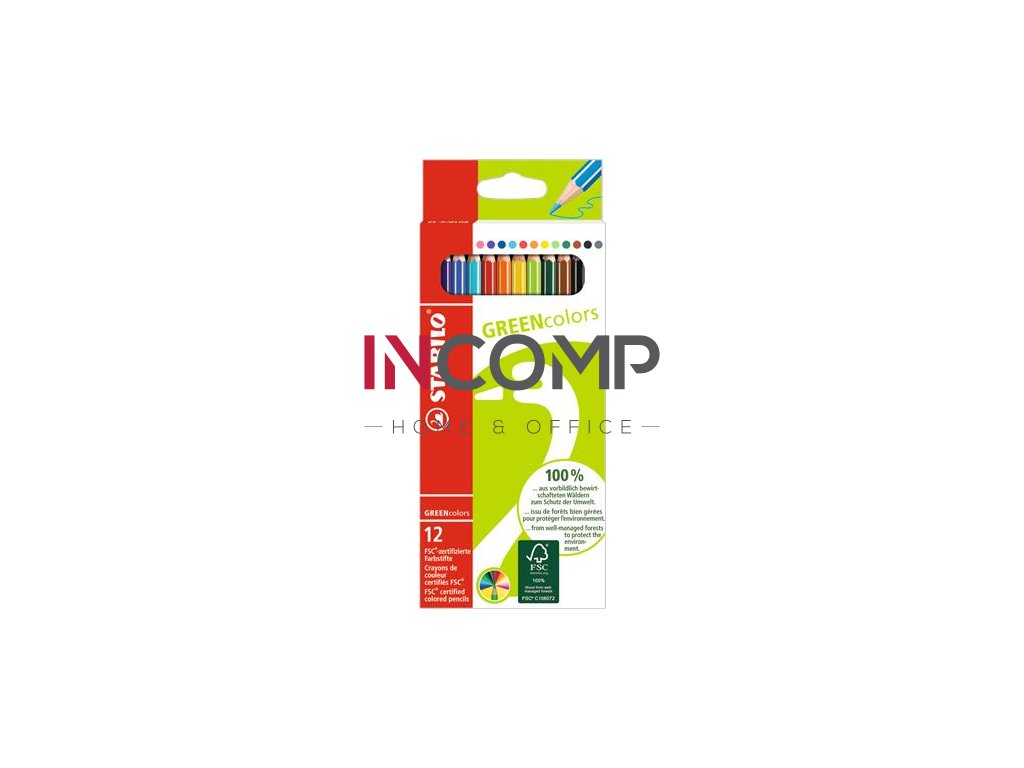 Farebné ceruzky, sada, šesťhranné, STABILO "GreenColors", 12 rôznych farieb