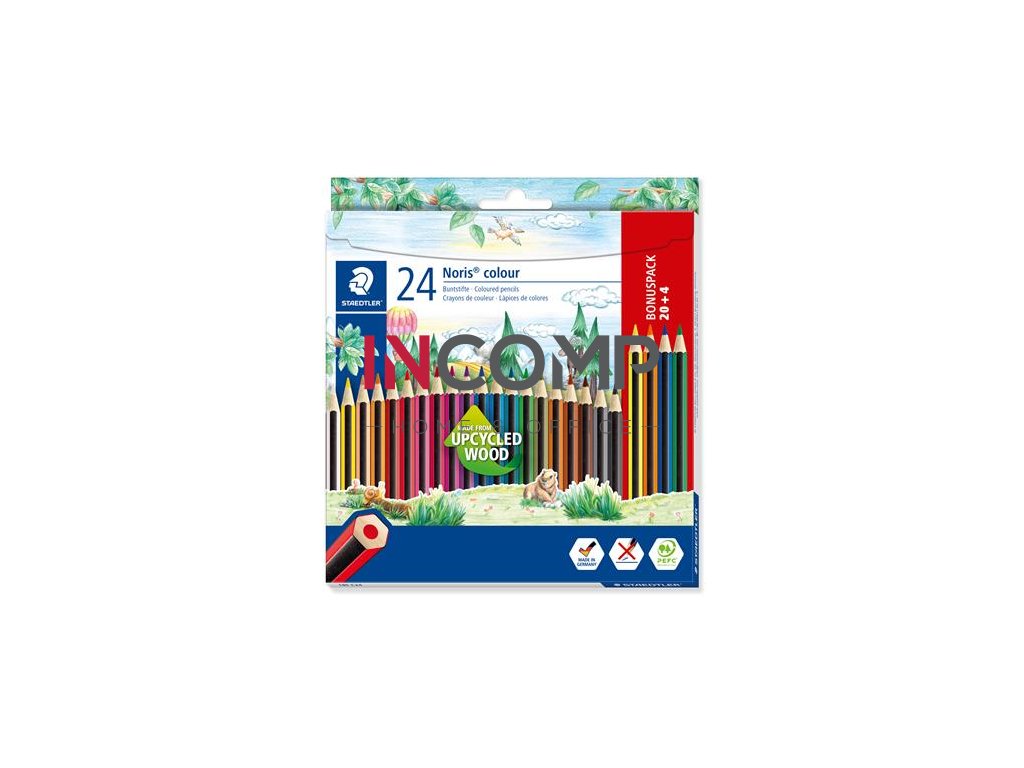 Farebné ceruzky, sada, šesťhranné, STAEDTLER "Noris Colour 185", 20+4 rôznych farieb