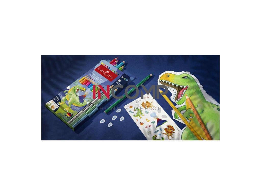 Farebné ceruzky, sada, trojhranné, FABER-CASTELL "Grip Dinosaurus" 10+3 rôznych farieb