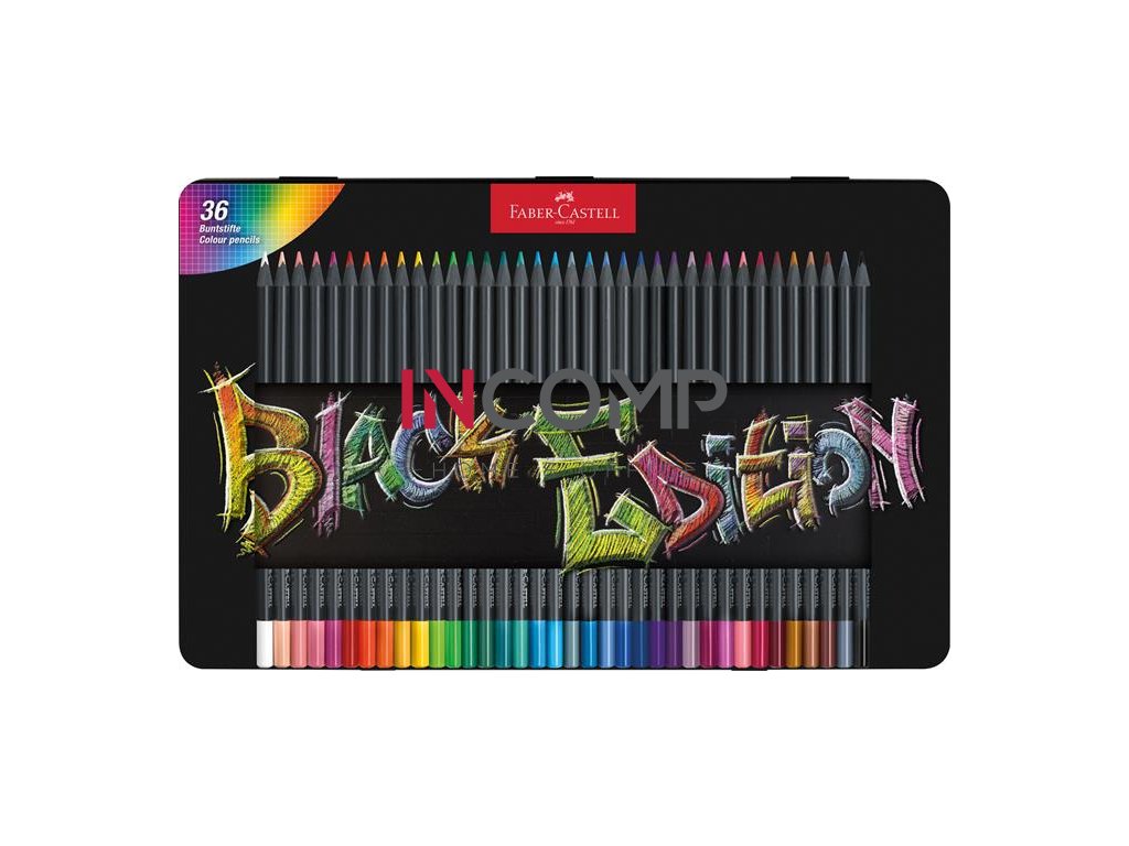 Farebné ceruzky, sada, trojhranné, v plechovej krabičke, FABER-CASTELL "Black Edition", 36 rôznych farieb