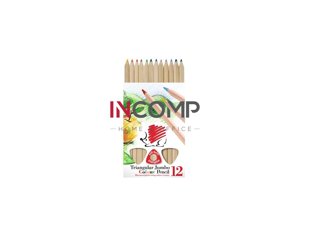 Farebné ceruzky, trojhranný tvar, hrubé, telo prírodnej farby, ICO "Ježko", 12 rôznych farieb