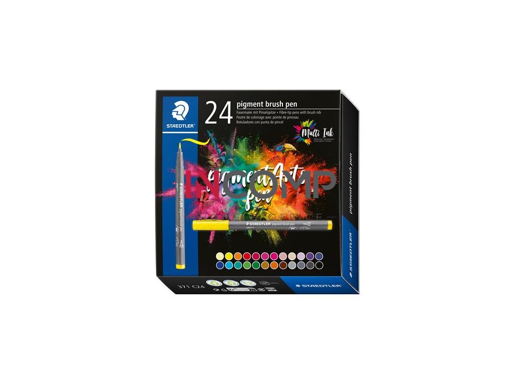 Fixka v tvare štetca, sada, STAEDTLER "Pigment brush 371", 24 rôznych farieb