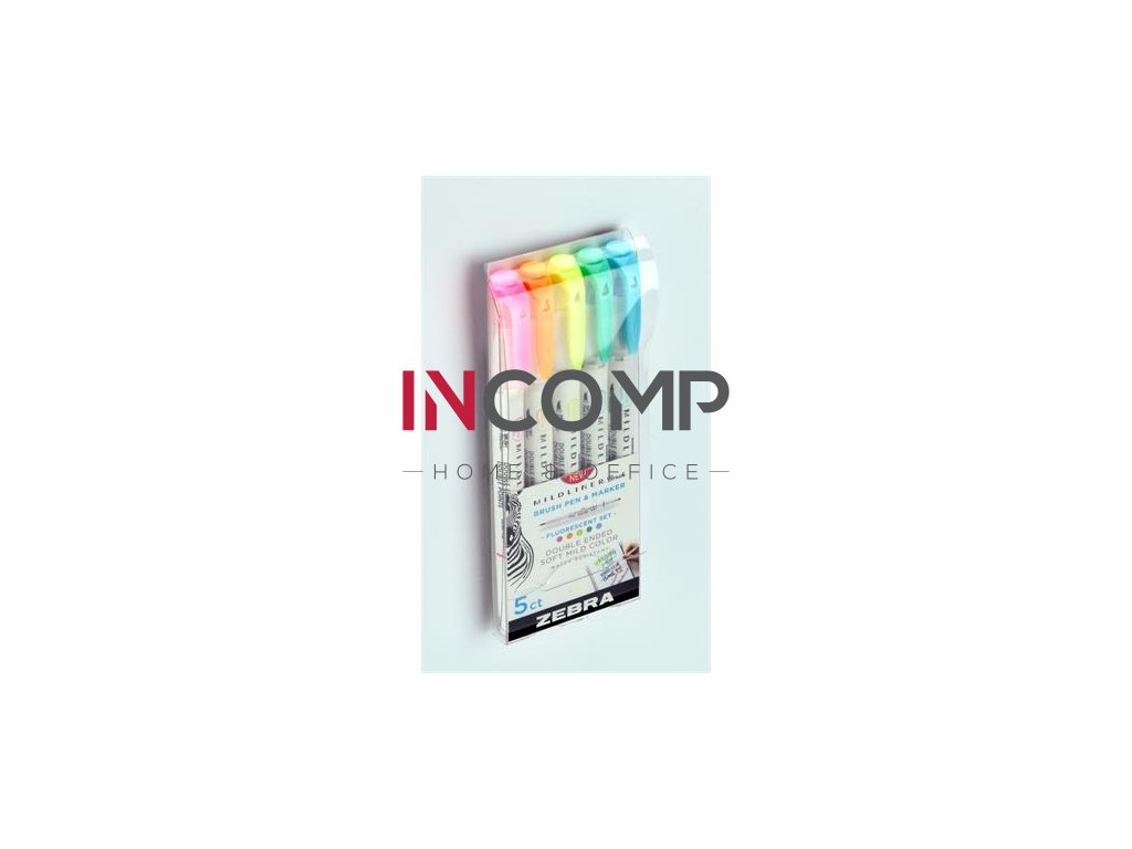 Fixky, sada, obojstranné, ZEBRA "Mildliner Fluorescent", 5 farieb