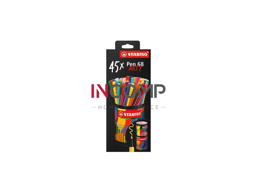 Ak stále hľadáte nové príležitosti na farbenie a kreslenie a ak od použitých nástrojov očakávate vynikajúcu efektivitu, potom bude STABILO Pen 68 vaším najlepším spoločníkom pri farbení. -praktický a odolný kovový valec, ktorý možno použiť aj ako držiak pera -priehľadná plastová vložka vrchnáka umožňuje vidieť farby v balení -či už ste umelec rozvíjajúci svoj talent alebo kreslenie len ako hobby, toto plsť prémiovej kvality s vláknitou špičkou je pre vás - uzáver až 24 hodín môže zostať bez - jeho atrament je bez zápachu a na vodnej báze - vyznačuje sa výnimočne dlhotrvajúcimi a intenzívnymi farbami - farby súpravy: 68/24, 44, 26, 85, 54, 30, 48, 50, 19, 47, 28, 29, 56, 58, 55, 60, 62, 98, 22, 41, 32, 512, 11, 13, 14, 33, 43, 36, 51, 53, 63, 35, 37, 66, 67, 86, 89, 75, 45, 65, 93, 94, 96, 46, 024, 3,3,40, 0 054, 056