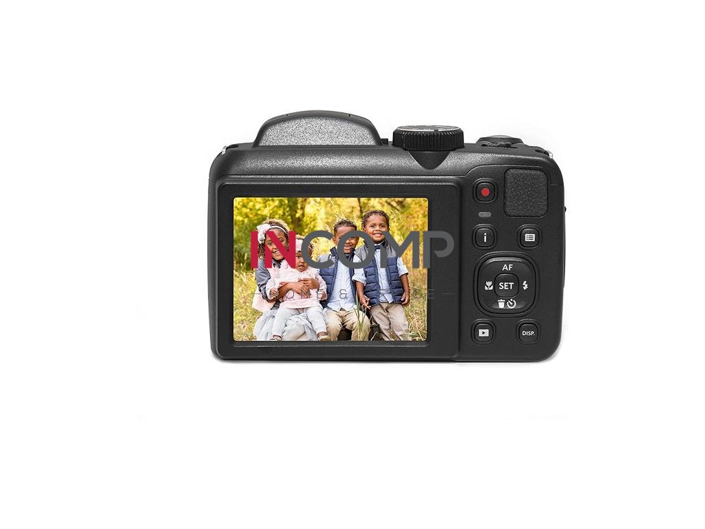 Objavte svet kreativity na dosah ruky. -25x optický zoom/4x digitálny zoom -24 mm širokouhlý objektív -1080P Full HD video -rozlíšenie snímača: 16 megapixelov -rozlíšenie displeja: 460 000 pixelov -3" LCD displej -úložisko dát: SD/SDHC/SDXC -formát súboru: JPEG Rýchlosť uzávierky: 1/2000-30 s -OIS (optický stabilizátor obrazu) -blesk -korekcia efektu červených očí -detekcia tváre -nastavenie vyváženia bielej: automatické -konektory: Micro-USB (USB 2.0), Micro HDMI výstup -batéria typ: 4xAA (príslušenstvo) - rozmery: 114,3 x 81,6 x 84,4 mm (Š x V x H) - hmotnosť: 439 g - obsah balenia: USB kábel, popruh na krk, kryt objektívu