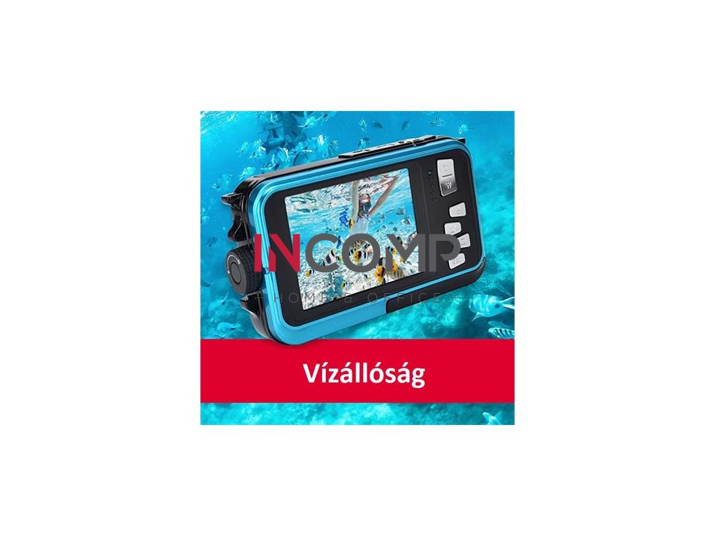 Cenovo dostupný vodotesný fotoaparát, ktorý oceníte na dovolenke. Fotografujte a nahrávajte FullHD video v hĺbke až 3 m! Fotoaparát má 2,7" hlavný displej a 1,8" selfie displej. Medzi ďalšie funkcie zariadenia patrí detekcia tváre a samospúšť. Fotoaparát je napájaný ľahko dobíjateľnou batériou. Na ukladanie dát sú podporované karty micro SD s kapacitou až 128 GB. Rozmer: 105 x 65,3 x 24,6 mm - Hmotnosť: 130 g
