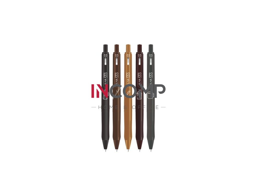 Gélové pero, 0,33 mm, stláčací mechanizmus, ZEBRA "Sarasa Study with Coffee", 5 rôznych farieb