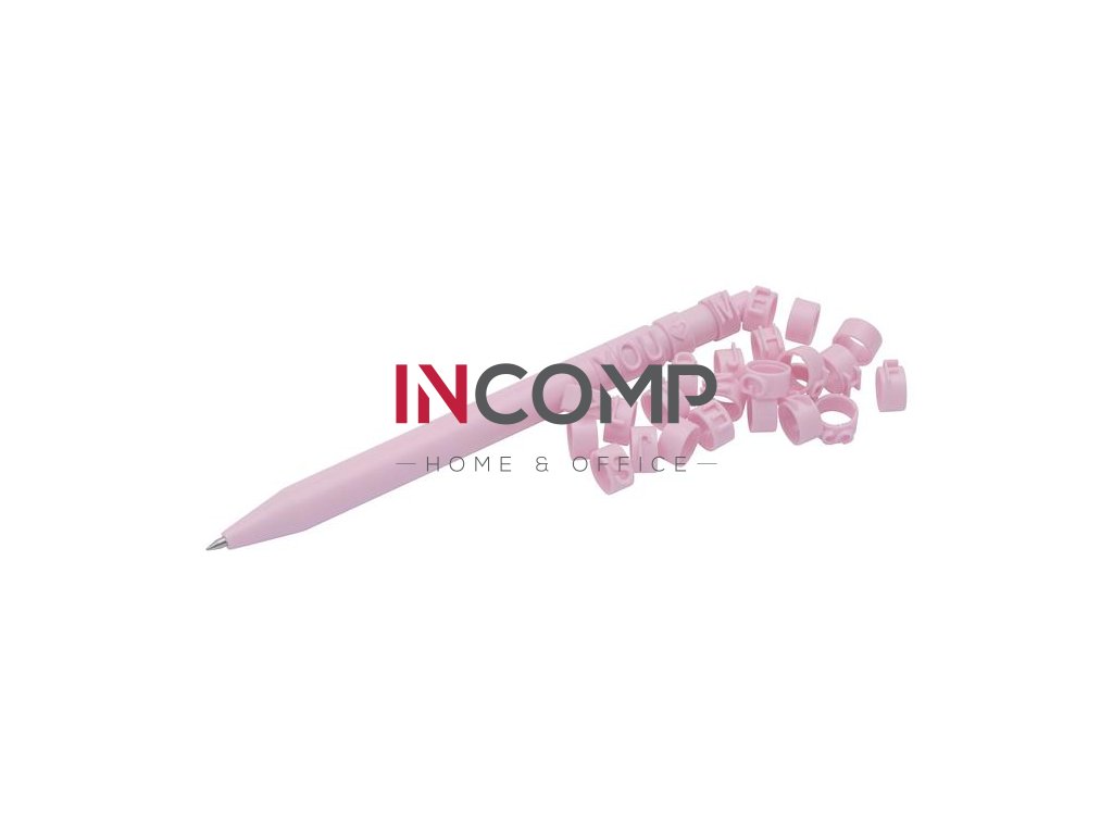 Nasadením krúžkov na písmená na telo pera si môžete pero prispôsobiť a ozvláštniť ho. Ideálna voľba ako darček. - balenie obsahuje 2 gélové perá a sadu 62 krúžkov s písmenami - vymeniteľnú náplň - ružové telo pera - modrý atrament
