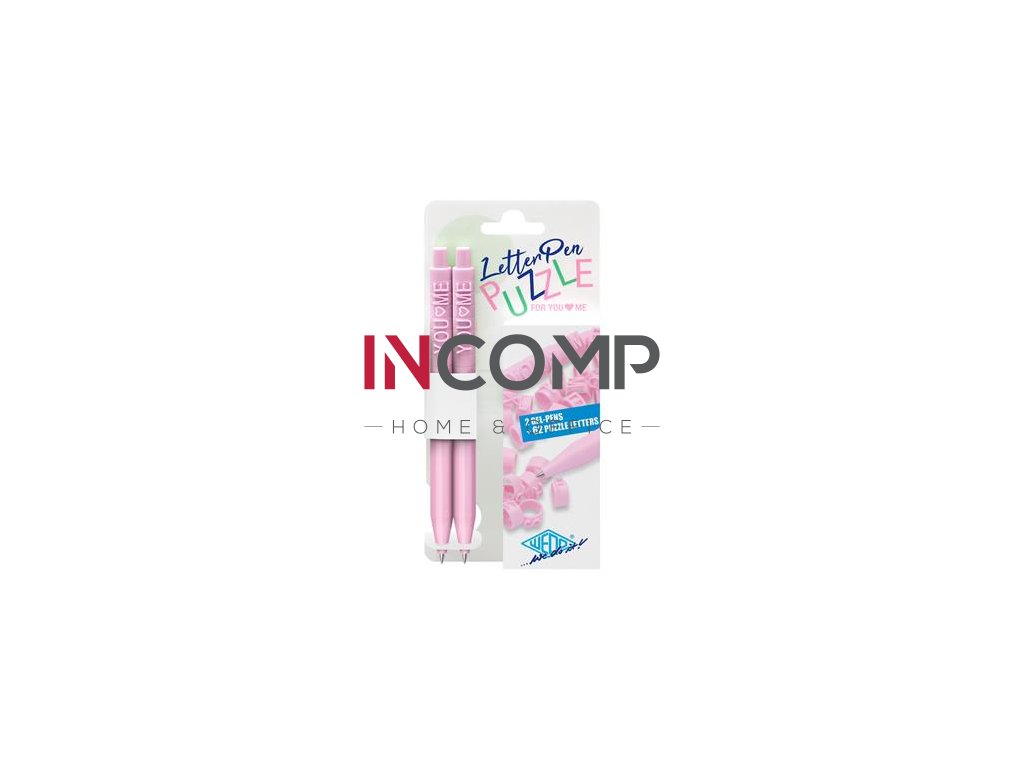 Gélové pero, stláčací mechanizmus, so 62 krúžkami na písmená, 2, WEDO "Letter Pen Puzzle", ružová