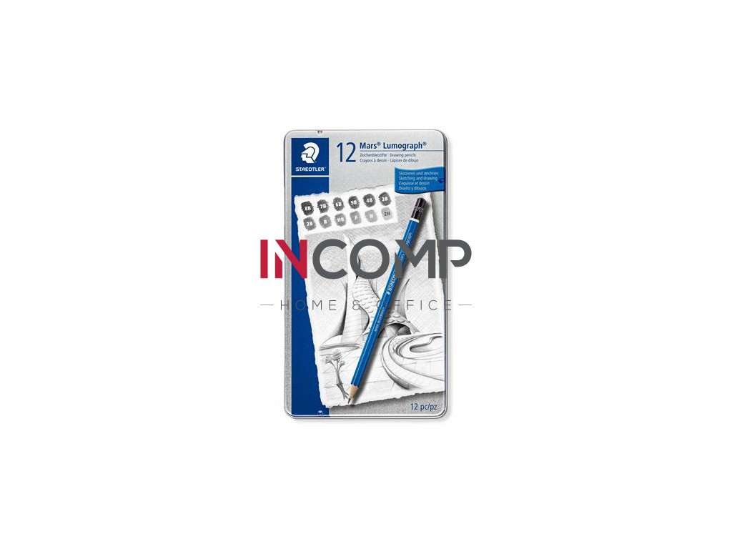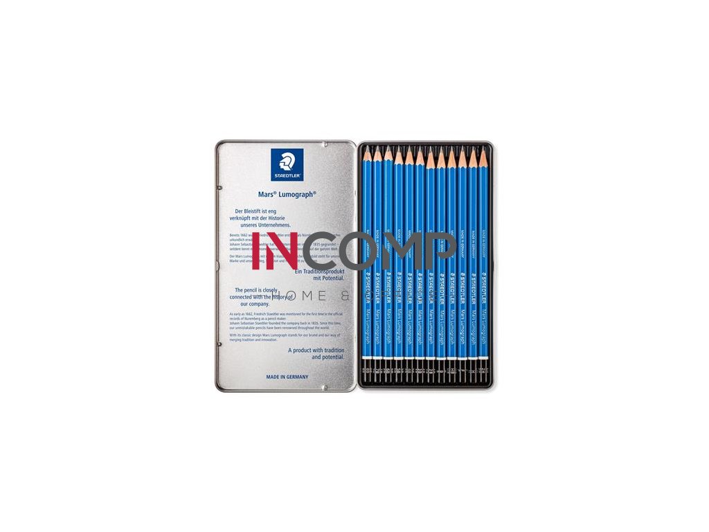 Grafitová ceruzka, sada, plechová krabička, šesťhranná, STAEDTLER "Mars Lumograph 100", 12 rôznych tvrdostí