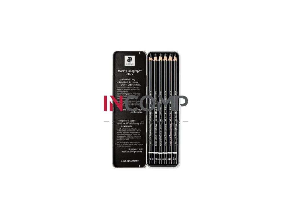Grafitová ceruzka, sada, šesťhranná, kovová škatuľa, STAEDTLER "Mars Lumograph 100B", 6 druhov tvrdosti, čierna