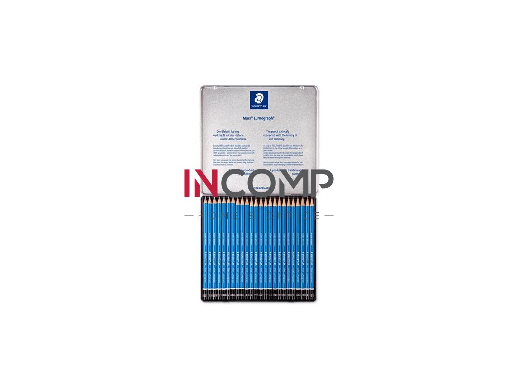 Grafitová ceruzka, sada, v kovovej krabičke, šesťhranná, STAEDTLER "Mars® Lumograph® 100", 24 rôznych tvrdostí