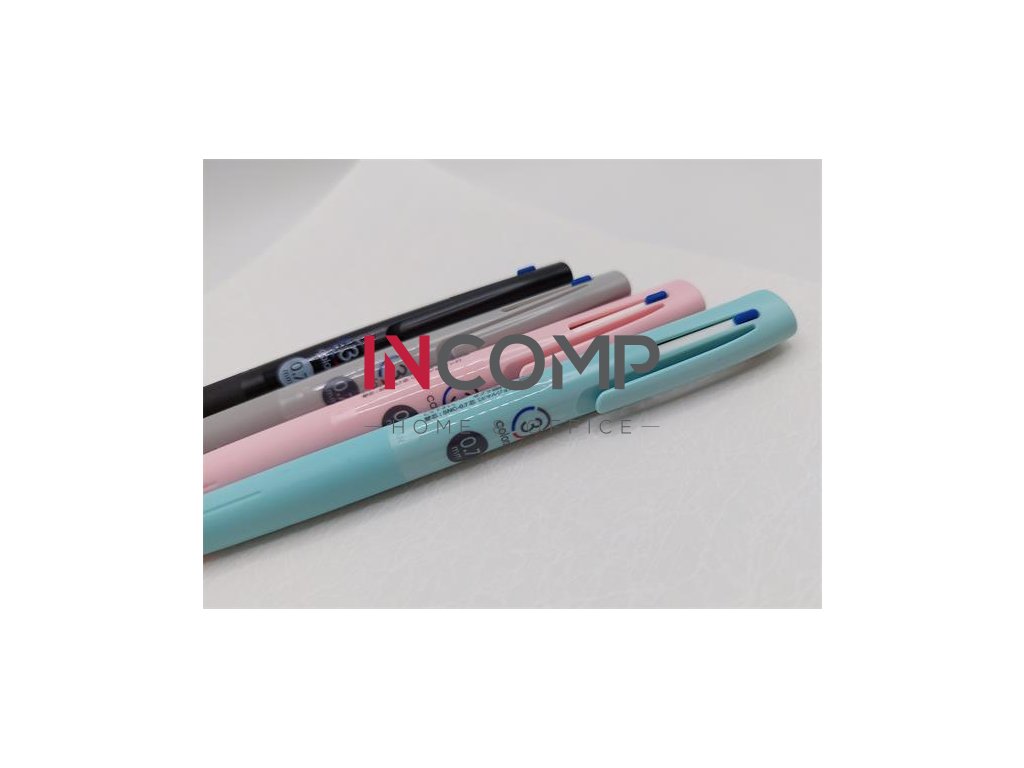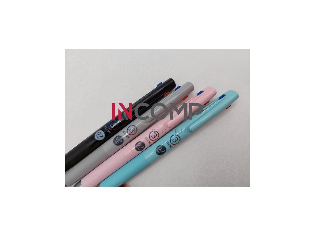 Guľôčkové pero, 0,24 mm, stláčací mechanizmus, trojfarebné, ZEBRA "Blen 3C", ružové telo