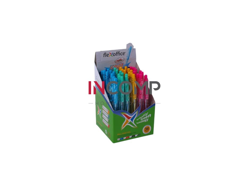 Guľôčkové pero, 0,25 mm, stláčací mechanizmus, rôzne farby tela, FLEXOFFICE "Jonat", modrá