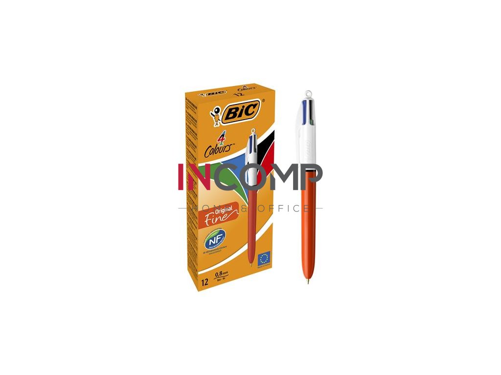 Guľôčkové pero, 0,3 mm, stláčací mechanizmus, 4 farby, BIC "4 Colours Fine"