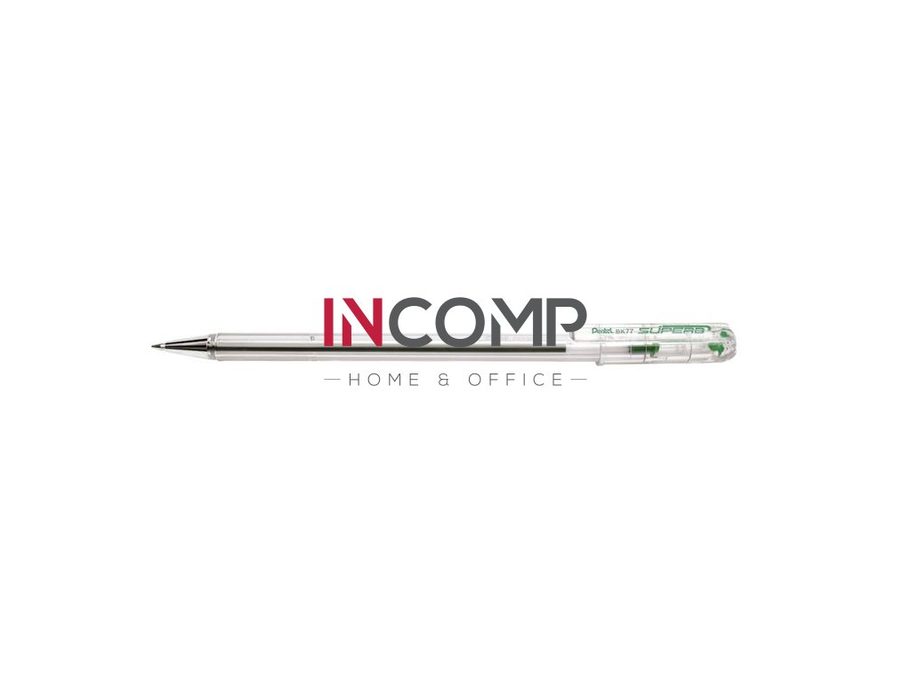 Guľôčkové pero, 0,35 mm, s vrchnákom, PENTEL "Superb BK77", zelená