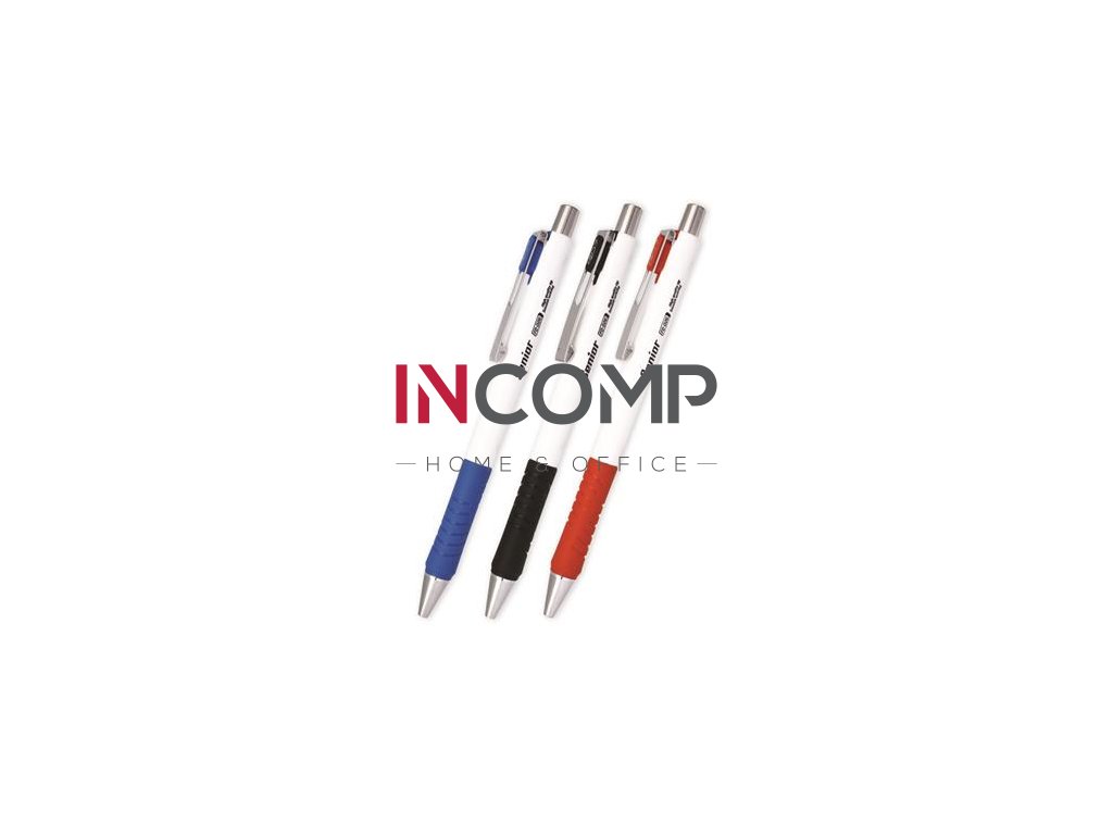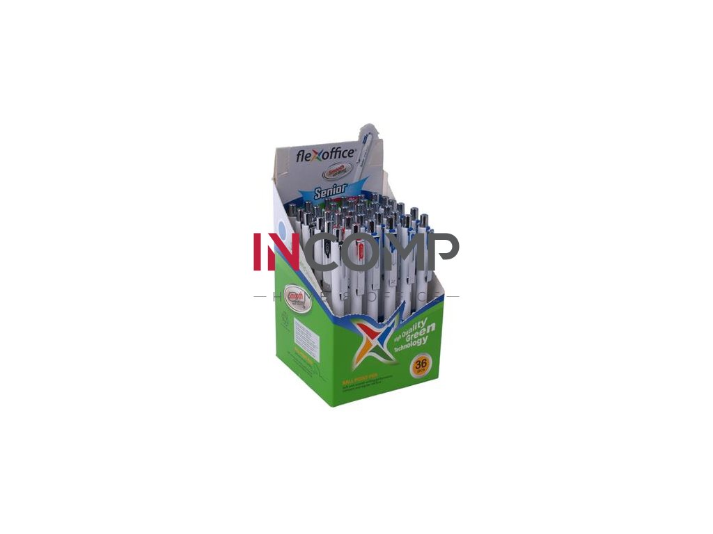 Guľôčkové pero, 0,4 mm, stláčací mechanizmus, rôzne farby tela, FLEXOFFICE "Senior", modré