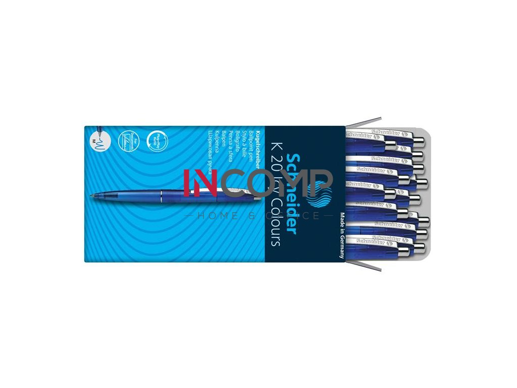 Guľôčkové pero, 0,5 mm, stláčací mechanizmus, SCHNEIDER "K20 Icy", modrá
