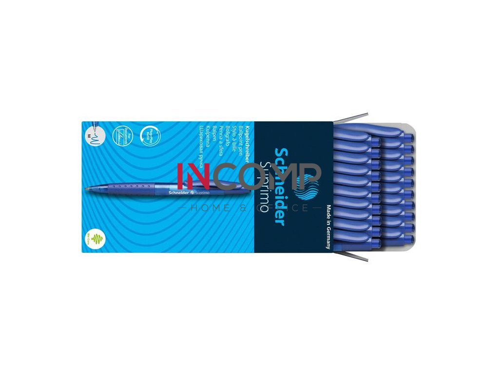 Guľôčkové pero, 0,5 mm, stláčací mechanizmus, SCHNEIDER "Suprimo", modré
