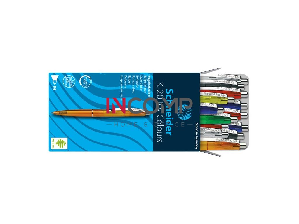 Guľôčkové pero, 0,5 mm, stláčací mechanizmus, telo pera v rôznych farbách, SCHNEIDER "K20 Icy", modrá