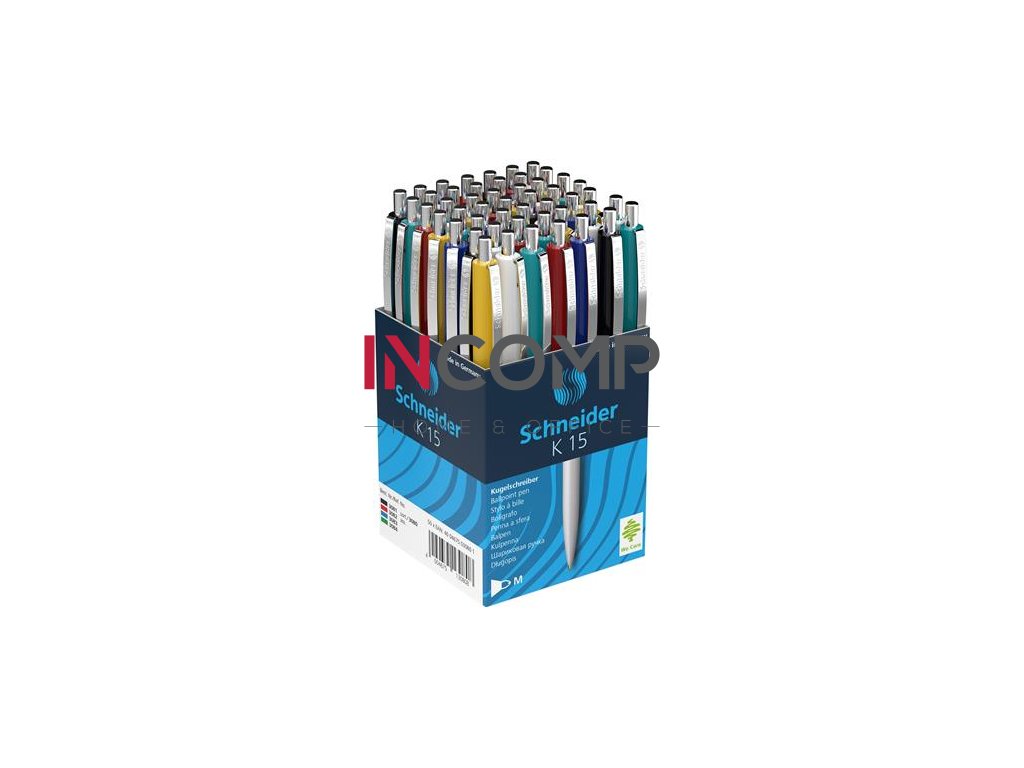 Guľôčkové pero, 0,5 mm, stláčací mechanizmus, telo v rôznych farbách, SCHNEIDER "K15", modrá