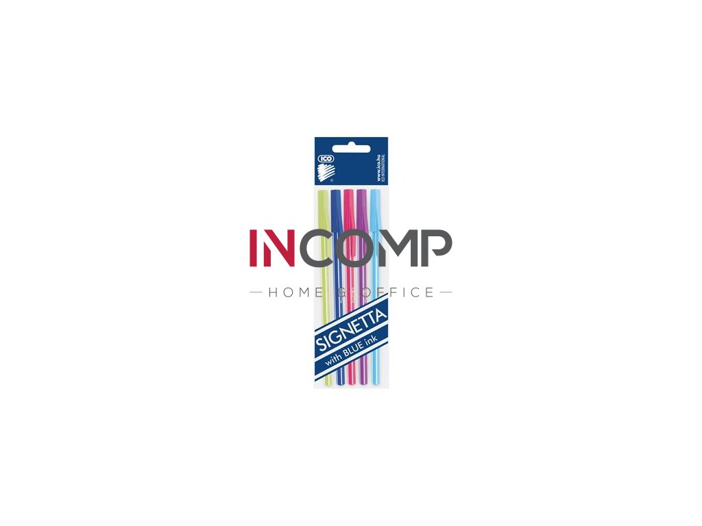 Guľôčkové pero, 0,7 mm, s vrchnákom, 5 rôznych farieb tela, ICO "Signetta Mix", modré