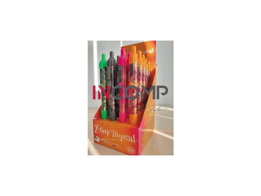 Guľôčkové pero, displej, 0,27 mm, stláčací mechanizmus, ZEBRA "Z-Grip Tropical", kék, 4 rôzne vzory