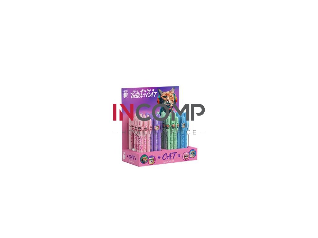 Guľôčkové pero, displej, 0,8 mm, stláčací mechanizmus, telo pera: mačka, ICO "Cat", modrá