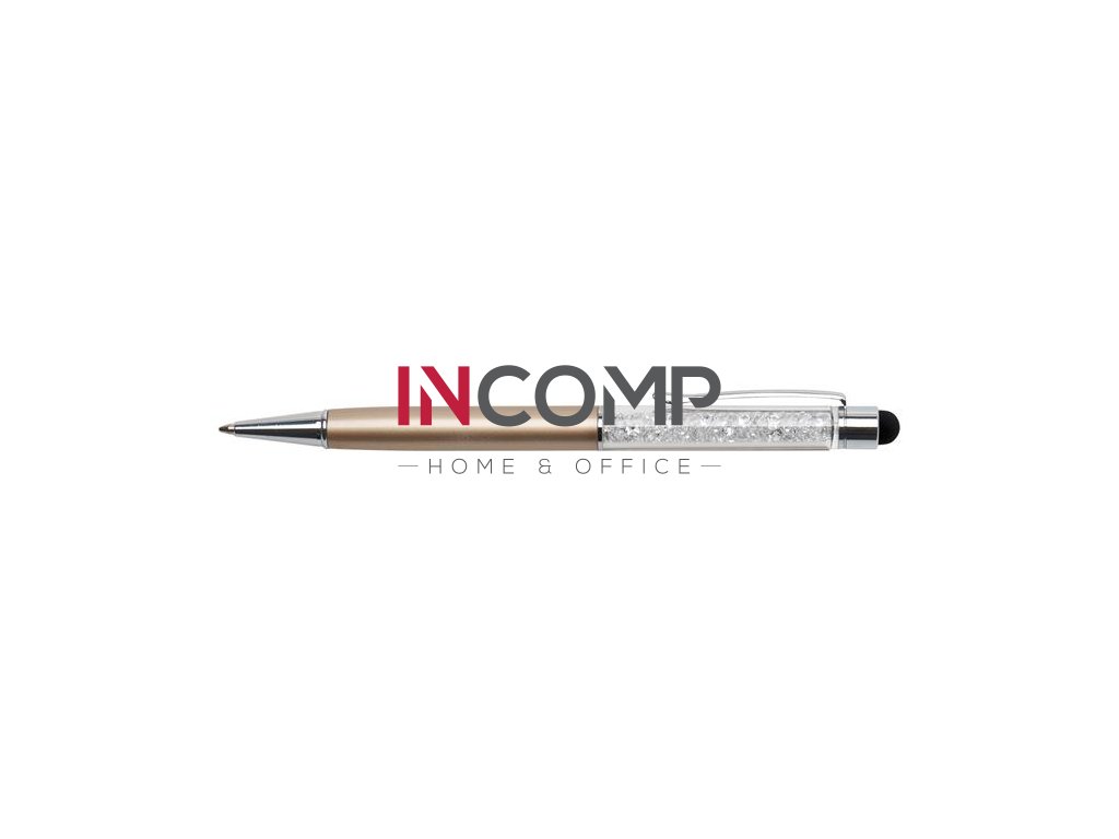 Guľôčkové pero, dotykové, s bielymi krištáľmi SWAROVSKI®, 14 cm, ART CRYSTELLA, zlatá