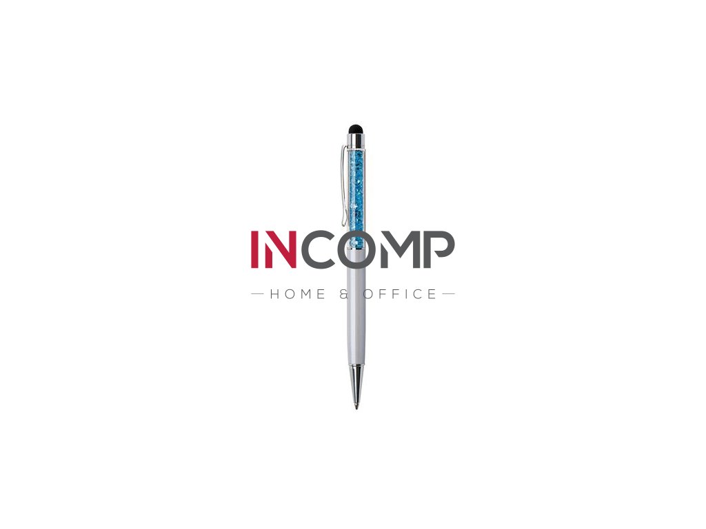 Guľôčkové pero, krémovo-biela, vrch aqua modrá, plnené SWAROVSKI® krištáľmi, TOUCH, 14 cm, ART CRYSTELLA®
