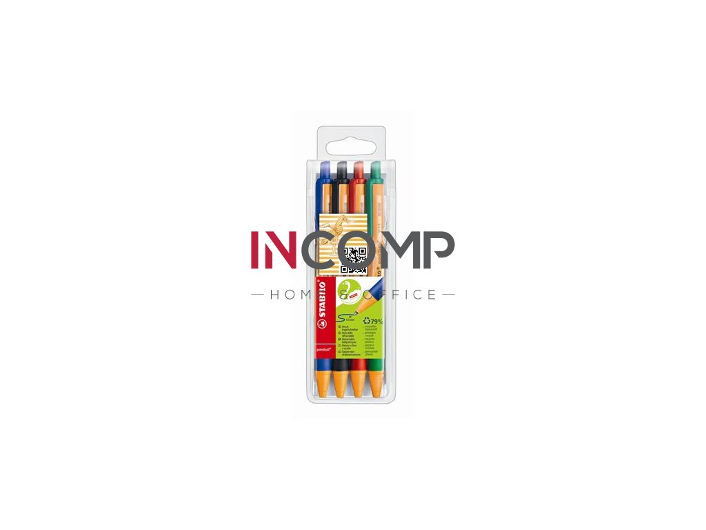 Guľôčkové pero, sada, 0,5 mm, STABILO "Pointball", 4 rôzne farby