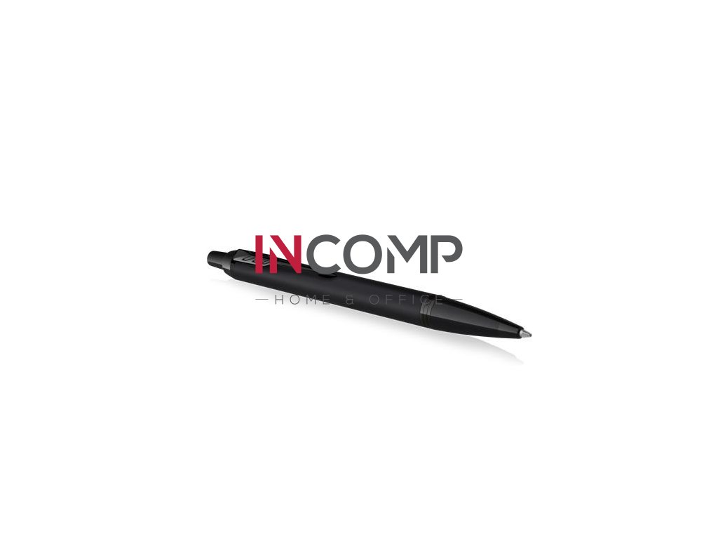 Guľôčkové pero, stláčací mechanizmus, čierny klip, matné čierne telo, PARKER "Royal IM Black", modrá