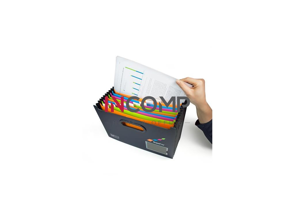 Harmonikový box na dokumenty, A4, PP, 13 priehradiek, antibakteriálny, RAPESCO "SupaFile", čierny