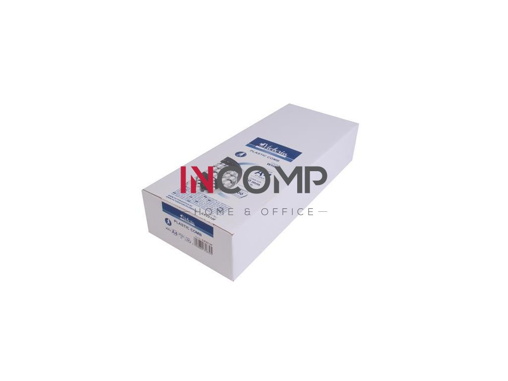 Hrebeň, plastový, 10 mm, 41-55 listov, VICTORIA OFFICE, biely