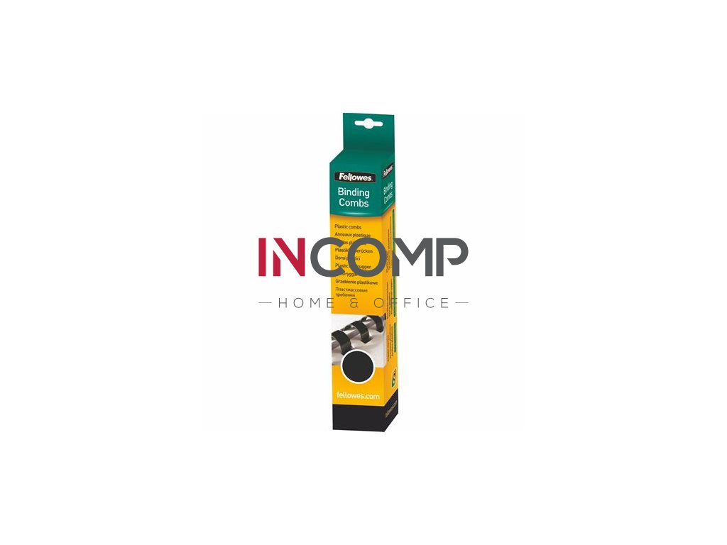 Hrebeň, plastový, 12 mm, 56-80 listov, FELLOWES, 25 ks, čierny
