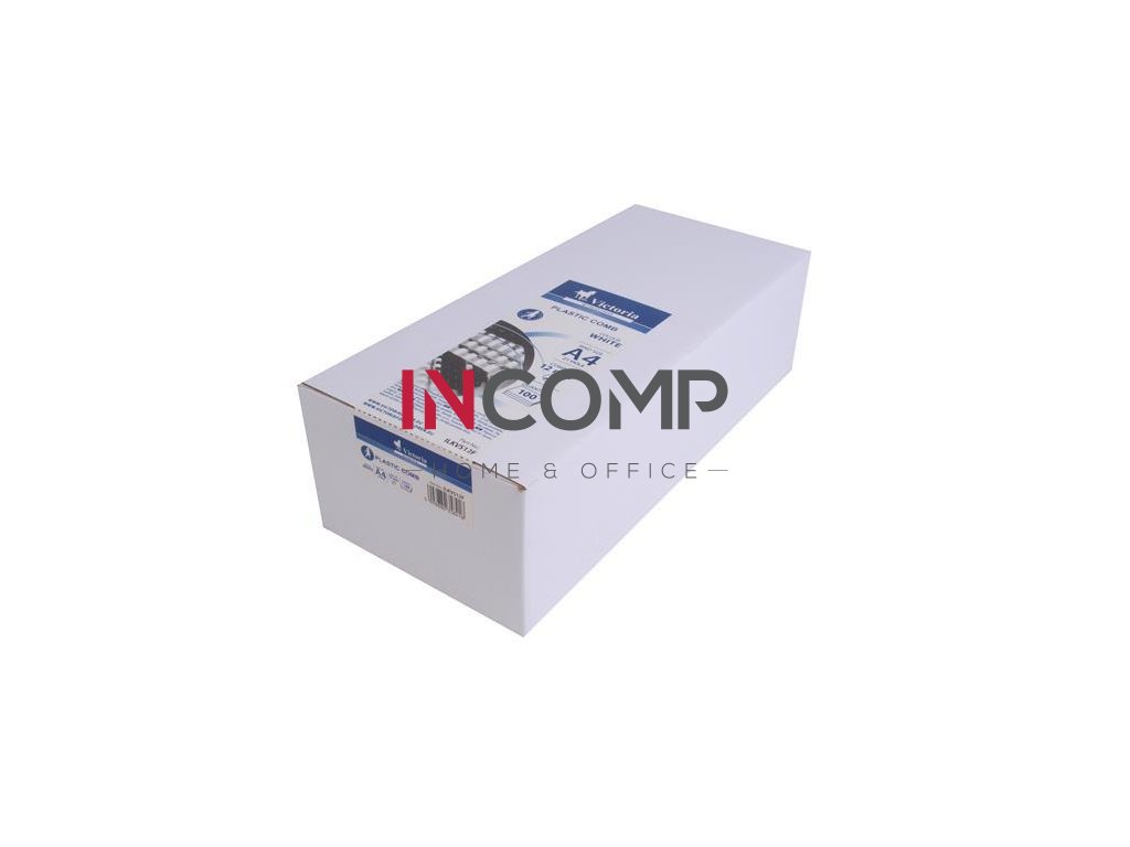 Hrebeň, plastový, 12 mm, 56-80 listov, VICTORIA OFFICE, biely