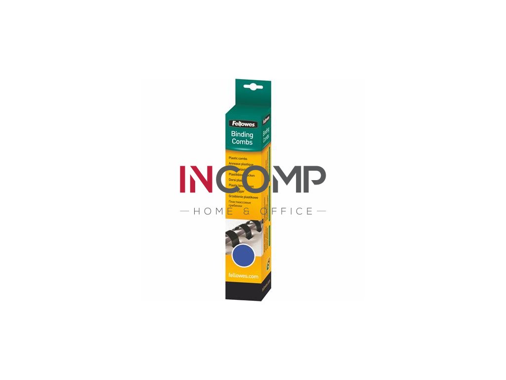 Hrebeň, plastový, 8 mm, 21-40 listov, FELLOWES, 25 ks, modrý