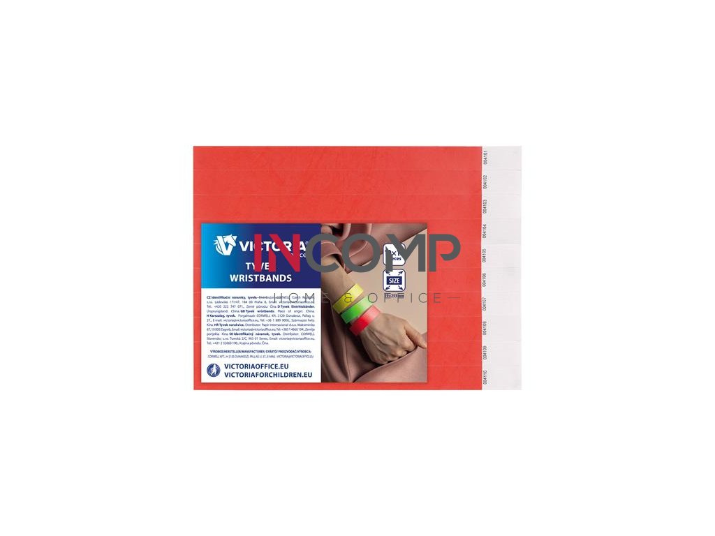 Identifikačný náramok, 3/4", tyvek, červený, VICTORIA OFFICE