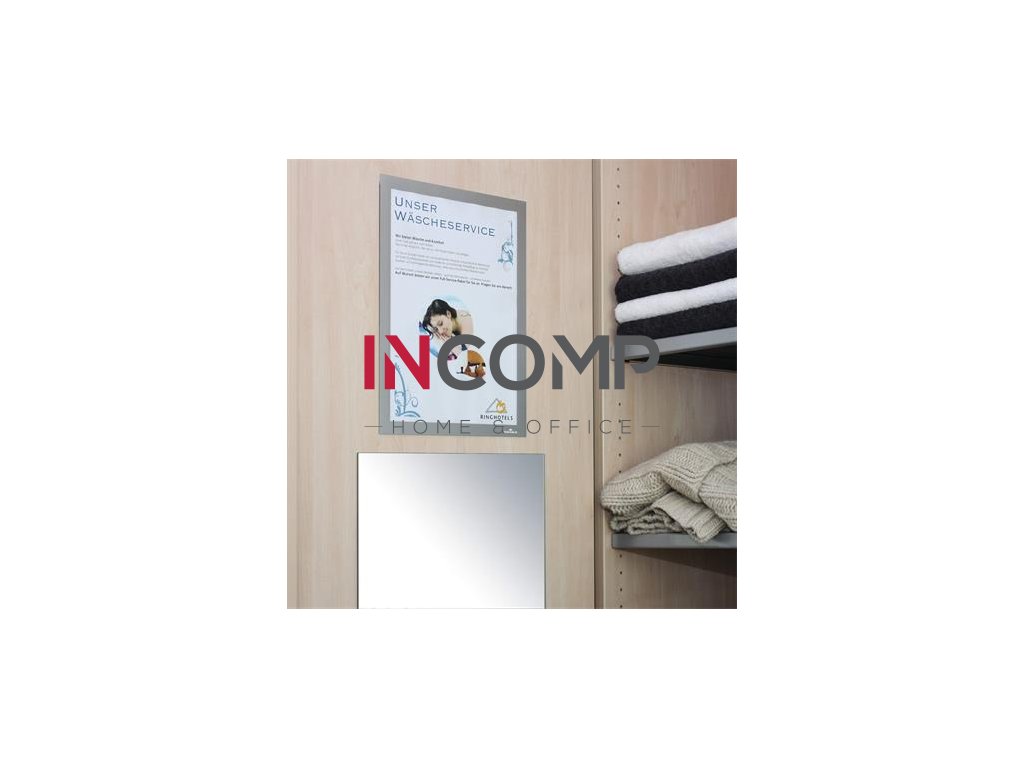 - DURAFRAME® informačný panel s prednou magnetickou časťou a zadnou samolepiacou časťou