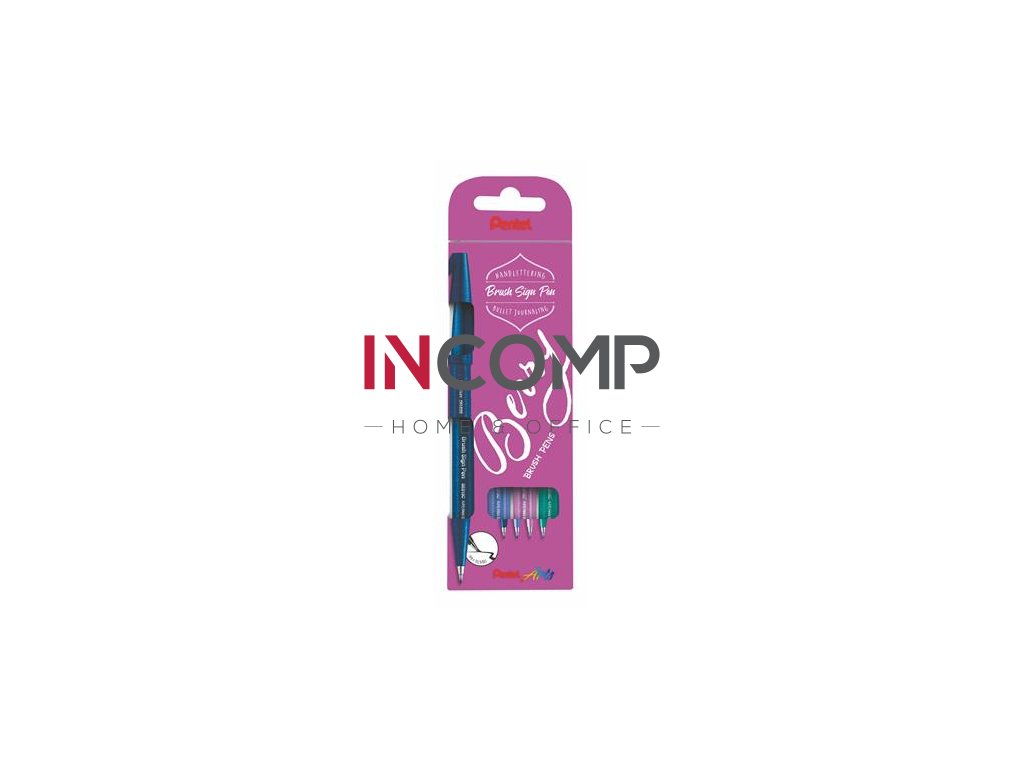 Kaligrafické štetce, sada, PENTEL "Brush Sign", 4 rôzne farby