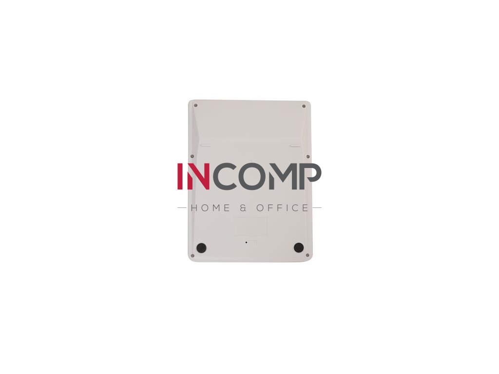 Obchodná stolná kalkulačka, silná, stabilná a robustná, s extra veľkým krytom. - 12-miestny, veľký naklonený 1-riadkový LCD displej (126,5x26,5 mm) - funkčné tlačidlá a číselné tlačidlá v rôznych farbách, pre rýchlejšie vyhľadávanie - pamäť - tlačidlo "00" - tlačidlo vymazania (vymazanie poslednej číslice) - výpočet percent - Výpočet DPH - môžete si vybrať, koľko desatinných miest sa zobrazí -automatický výber zaokrúhľovania -automatické vypnutie -rozmer: 155x205x35 mm -nabíjanie: solárne + 1 batéria LR44 (príslušenstvo) -ekologické balenie s blistrovým uzáverom -záruka: 5 rokov