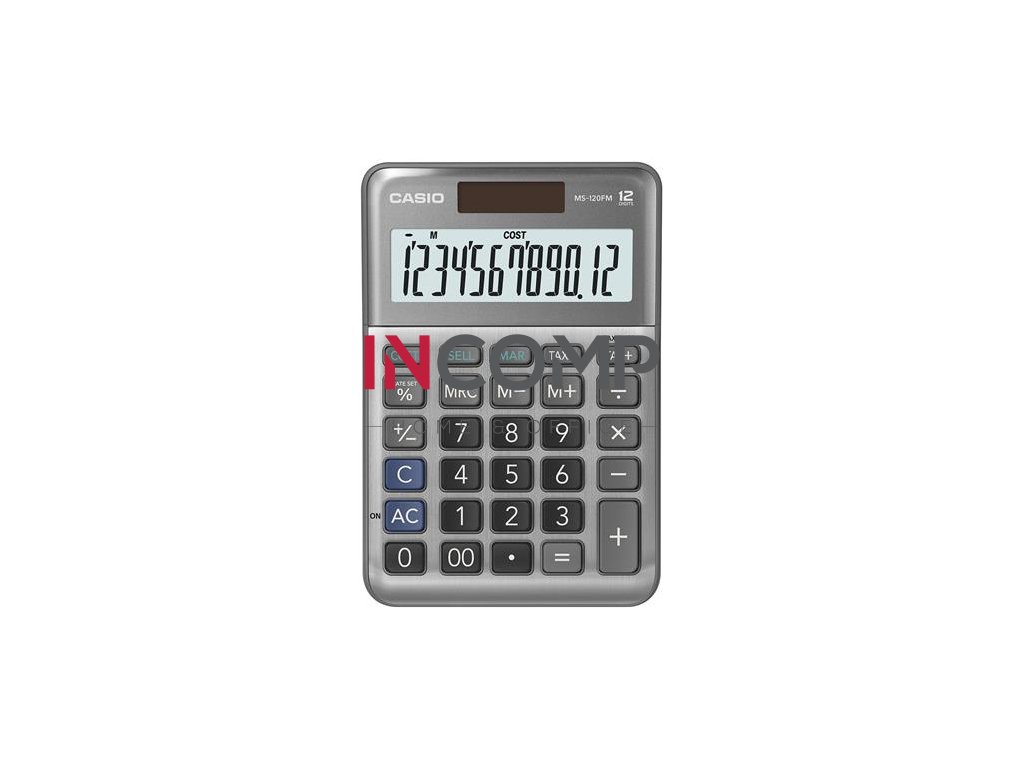 Kalkulačka, stolová, 12 miestný displej, CASIO "MS-120 FM", sivá