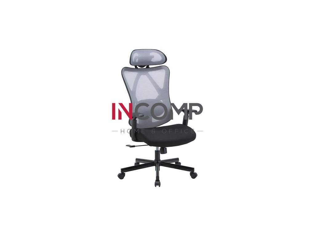 Kancelárska stolička, čalúnená, nastaviteľná opierka hlavy, "Cope", sivá