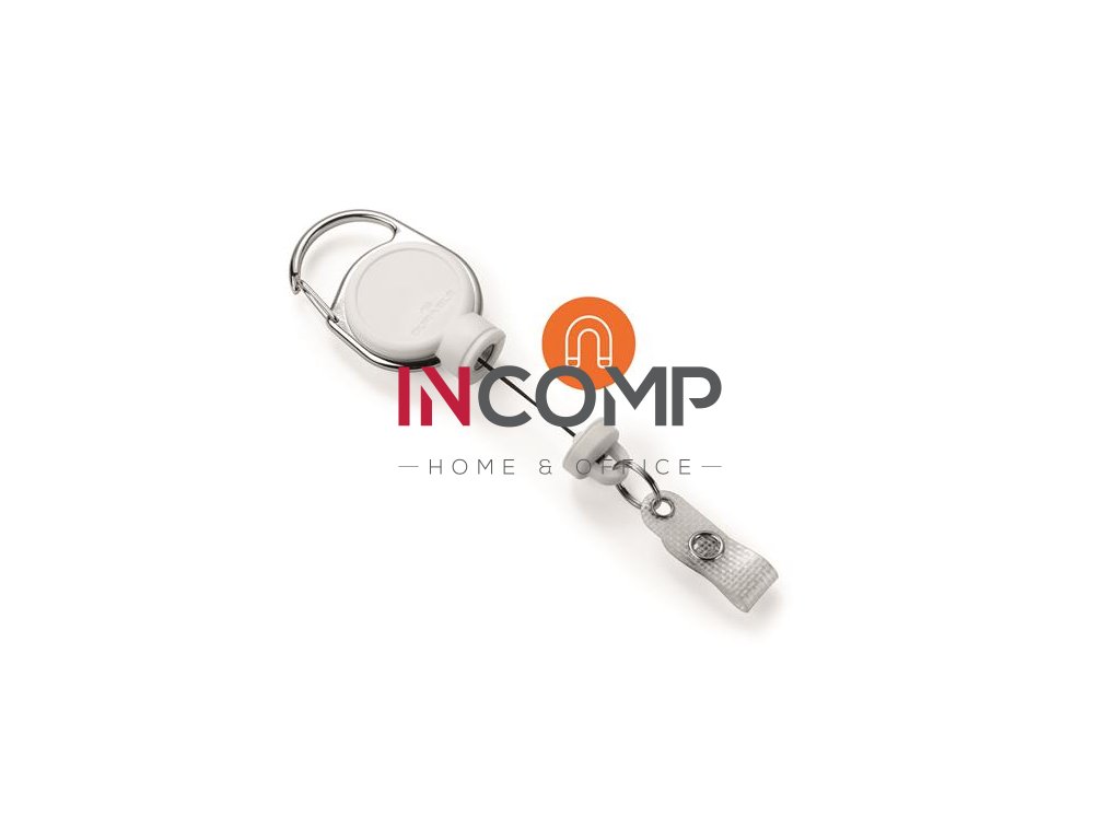 Klip s navíjacou šnúrou a karabínou, DURABLE "Extra strong", biela