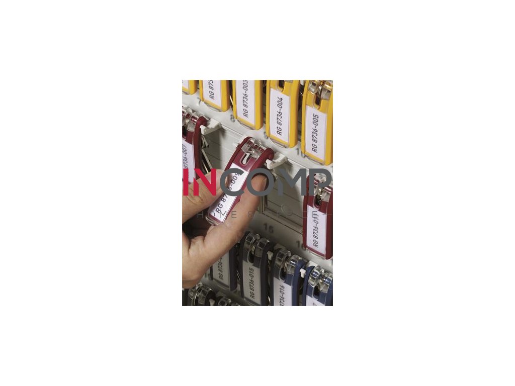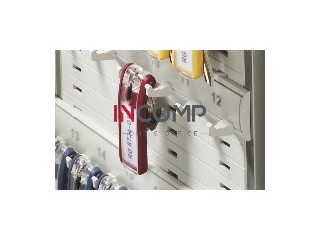 Tento jedinečný plastový prívesok na kľúče umožňuje dokonalý prehľad o kľúčoch v skrinke vďaka tomu, že kľúče sú na plocho uložené za kľúčenkou a popisovacie štítky sú tak kedykoľvek čitateľné. Kľúčenka je speciálne designovaná, aby bola zavesená na háčikoch a špeciálnych koľajniciach, jedine táto kombinácia zabezpečí, že kľúčenka visí nehybne na svojom mieste. Pre vloženie popisovacieho štítku možno klip ľahko otvoriť bez nutnosti zbavenia sa závesného krúžku. Na uľahčenie popisu slúži bezplatný softvér na www.durable.de. KEY CLIP - Kľúčenka je v ponuke v štyroch atraktívnych farbách (žltá, červená, modrá a čierna) - farbu nie je možné vybrať.